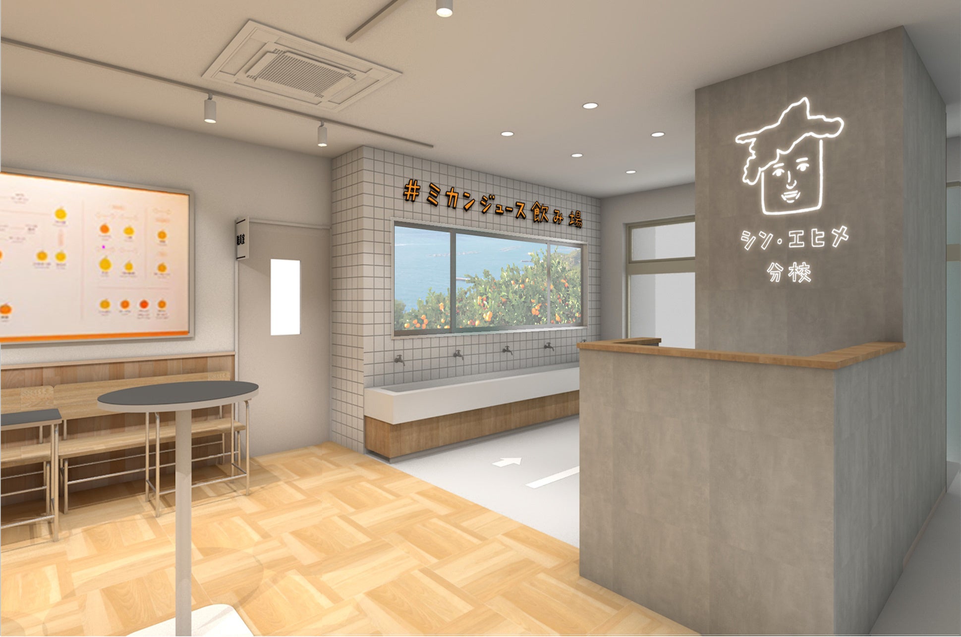 本リニューアルにより、今治で作られた上質なタオルのブランド「伊織」と、愛媛の美味しいもの、楽しいもの、美しいものをあつめたアンテナショップ「シン・エヒメ」に加えて、上記蛇口みかんジュースを楽しめる「シン・エヒメ分校」を合わせた3つのコンテンツが楽しめる複合店として生まれ変わります。