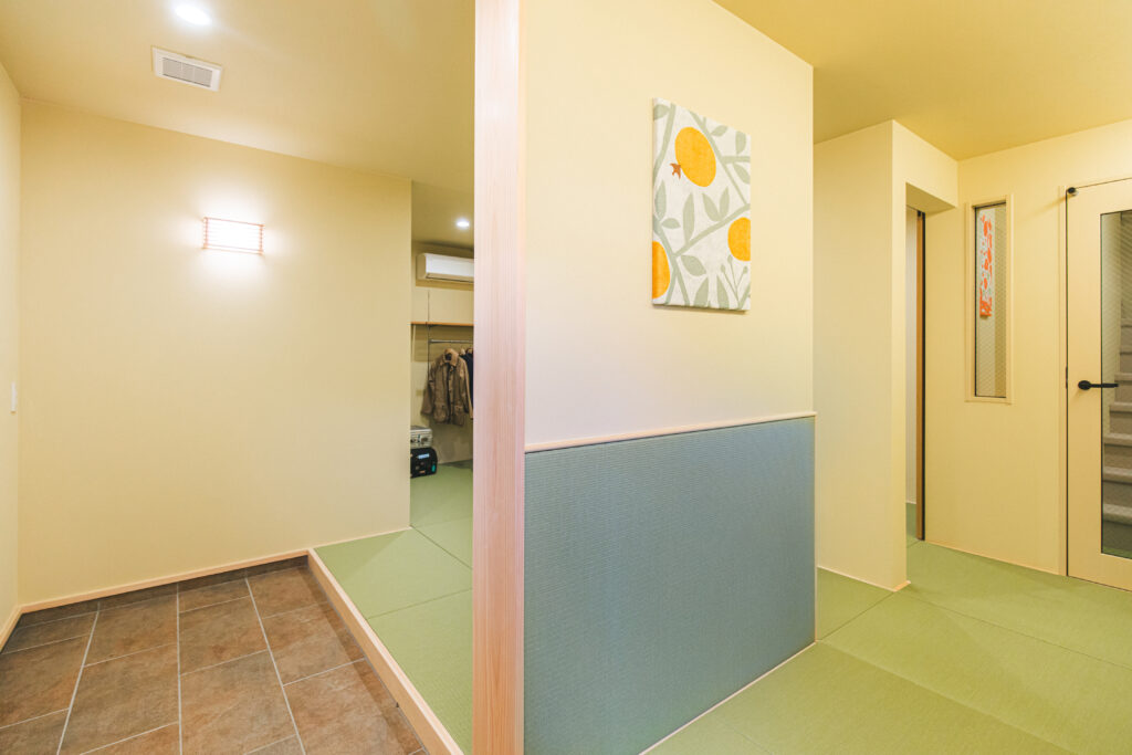 3. 転んでも、ぶつかっても大丈夫 — 全フロア畳張り、腰壁までクッション素材。お風呂の洗い場まで畳張り